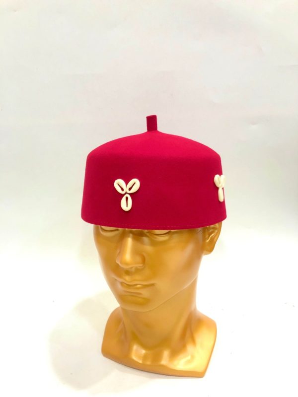 Get this igbo men traditional red cap embelished with real cowries. This cap is made of wool and is popularly worn for traditional events. This cap is worn by African Kings, chiefs and big men.